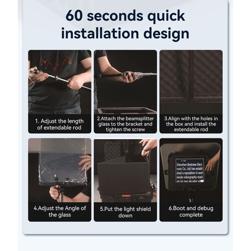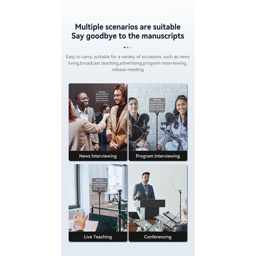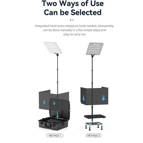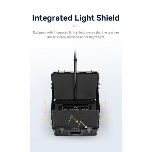 Incluye: Teleprompter Profesional Desview DP300 + Fuente + Remoto + Chicote HDMi o SDI + Valija de transporte