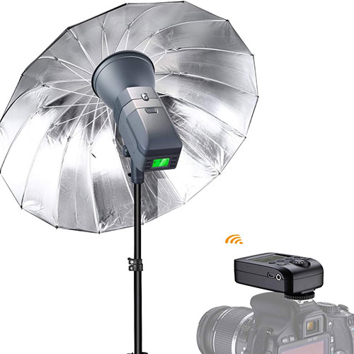 Incluye: 1 Cabezal de Flash 400W inalámbrico + 1 pie +Cacerola + (Softbox o Paraguas) a elección + 2x Baterias+ Cargador + Bolso de transporte. Radio disparador TTL a confirmar en reserva CANON – SONY – NIKON