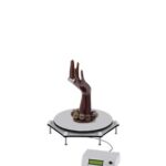 Base Giratoria 360 grados Motorizada para fotografia de productos (Blanco) (38cm Diámetro) (220v) Vuelta completa aprox. en 40 segundos o hasta 3 min – carga máxima 20Kg, Se comunica por infrarrojo con cámaras Canon, Nikon y Sony haciéndolas disparar automáticamente, Sincronización Smarphone – Para celulares IPHONE y ANDROID conectada por Bluetooth.