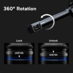 Su construcción óptica de 28 elementos en 19 grupos genera un bokeh suave y circular, con mínimo focus breathing. El lente puede rotar 360° sobre su eje, permitiendo tomas giratorias muy particulares. Tanto el anillo de foco como el de iris cuentan con engranajes estándar de cine 0.8 MOD, ideales para trabajar con follow focus. En el extremo del lente (de unos 40 cm de largo) incorpora una rosca 1/4″-20 para montar luces u otros accesorios. Además, incluye LEDs integrados en la punta, generando un efecto tipo ring light directamente en la escena.