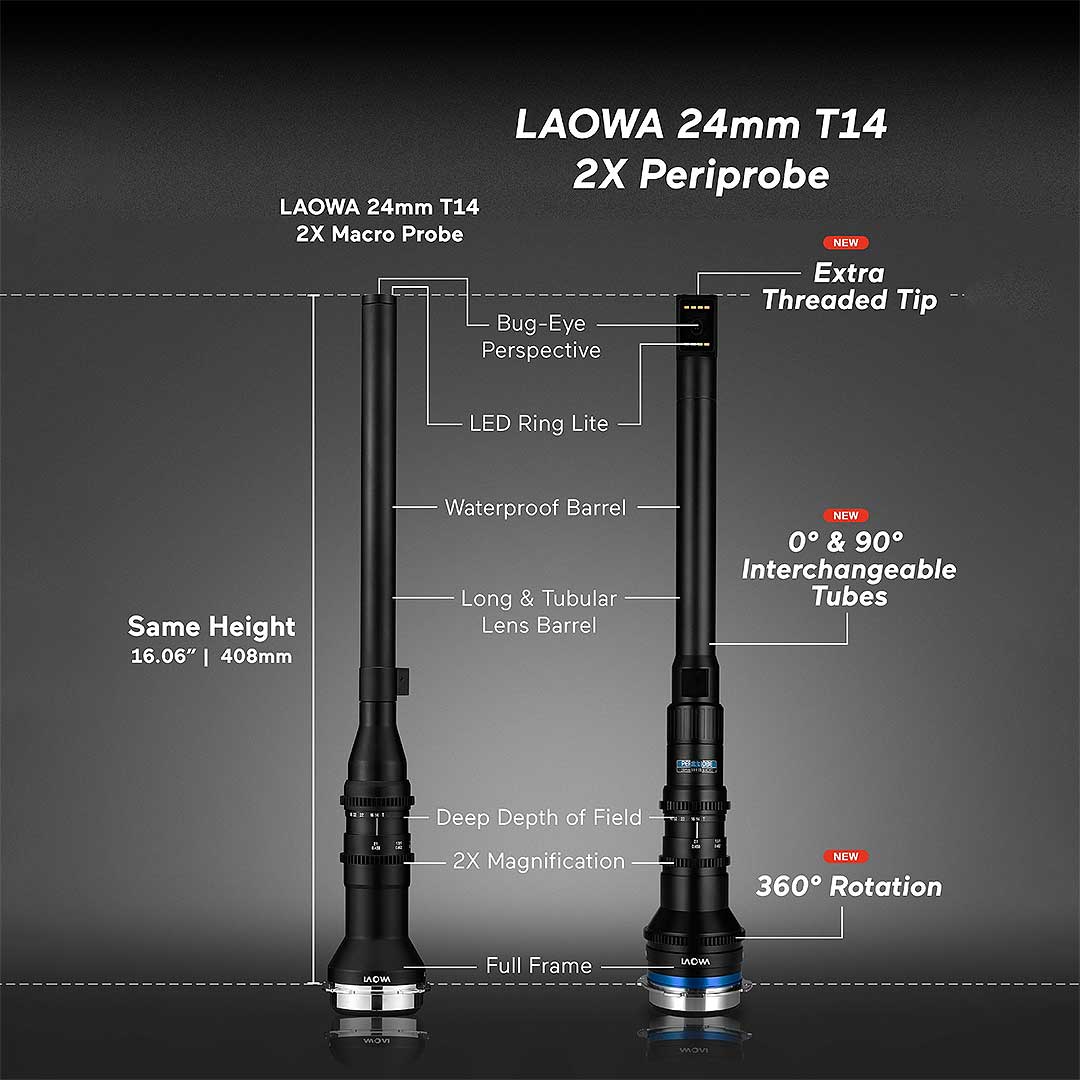 El Venus Optics LAOWA 24mm T14-40 Full Frame 2x PeriProbe Cine Lens está diseñado para capturar tomas macro ampliadas con una nitidez increíble en sensores full frame con montura Sony E, ofreciendo una distancia focal de 24mm. Su diseño tipo periscopio, con tubo largo e intercambiable, permite trabajar con un rango de apertura de T14 a T40, logrando desde gran profundidad de campo hasta desenfoques más selectivos. Además, podés usarlo en espacios reducidos o incluso bajo el agua, gracias a su barril frontal resistente al agua y su perfil delgado.