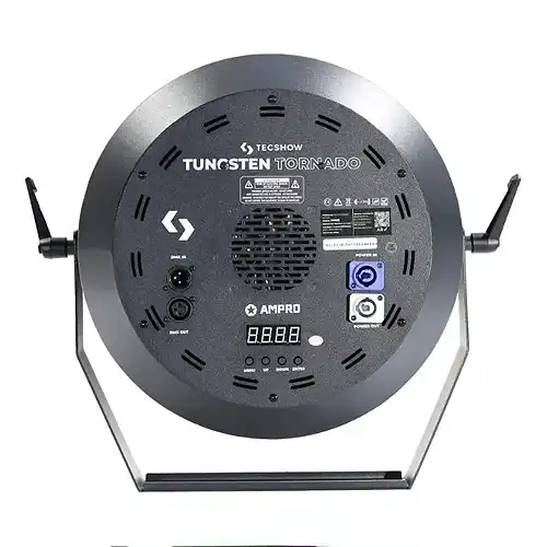 Diseñado para brindar una estética vintage con tecnología LED, Tungsten Tornado fusiona una potente fuente COB de 100 W cálida con un aro interno RGB y un aura externa blanca cálida. Su diseño robusto, funciones de mezcla RGB y compatibilidad con DMX/RDM lo convierten en una opción ideal para escenarios, sets y ambientaciones decorativas. Se entrega en flightcase rígido para 4 unidades.