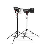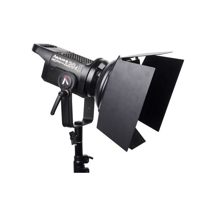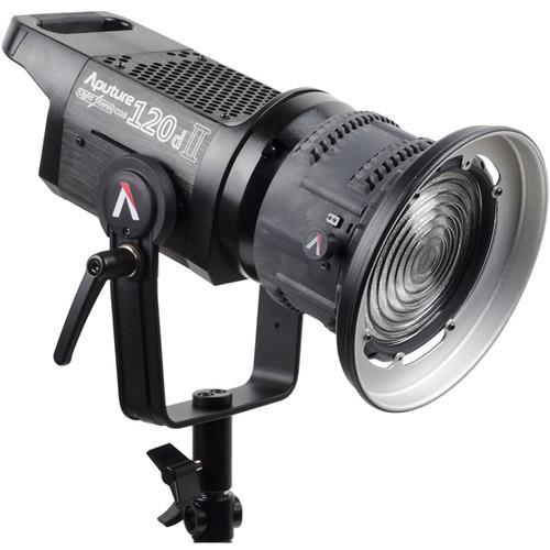 KIT Valija x2 Spot 120w LED Aputure 120D II (Frios) (120W led Símil 1000w Halógeno) (DMX CRI98 – TLCI95) (Dimmerizable 0-100%) Cooler Ultra silencioso (Alta potencia a bajo consumo y sin generar calor) Cabezal + Controlador externo con dimmer digital + Horquilla de movimiento con montura de dado 5/8.